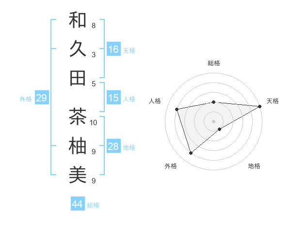 和久田 茶柚美さんを姓名の画数から五運を鑑定