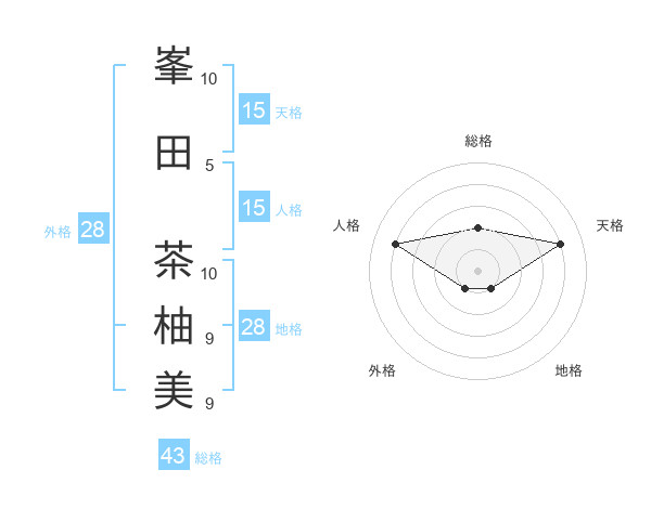 峯田 茶柚美さんを姓名の画数から五運を鑑定