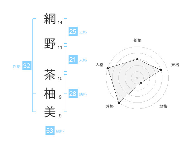 網野 茶柚美さんの外格は32画の5点!