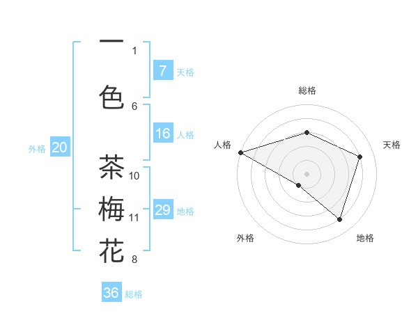 一色 茶梅花さんを姓名の画数から五運を鑑定