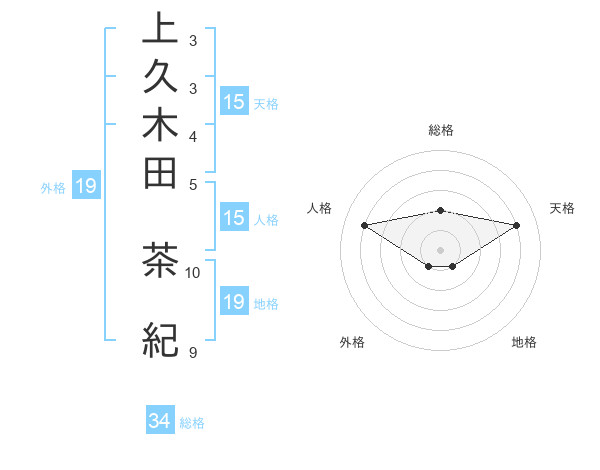上久木田 茶紀さんを姓名の画数から五運を鑑定