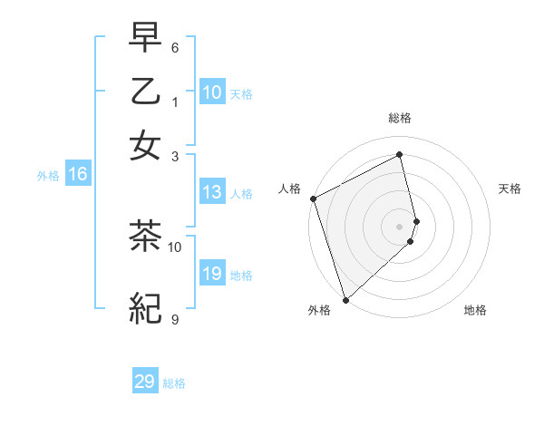 早乙女 茶紀さんを姓名の画数から五運を鑑定