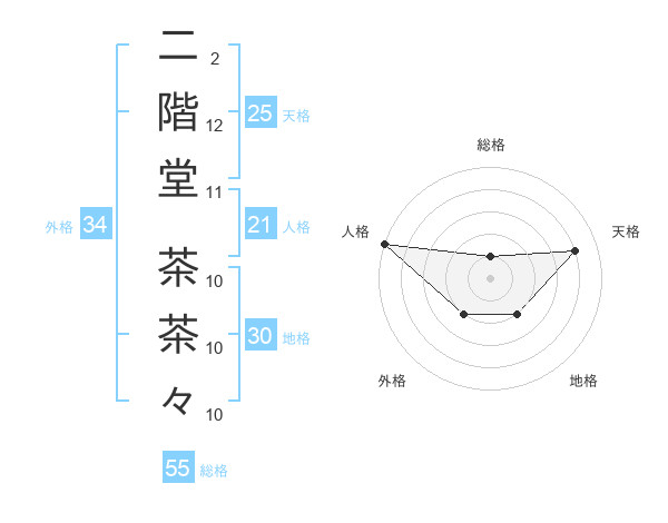 二階堂 茶茶々さんの人格は21画の5点!