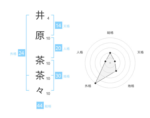 井原 茶茶々さんを姓名の画数から五運を鑑定