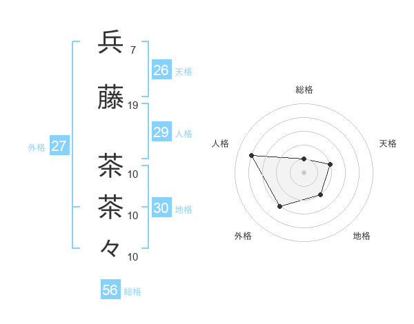 兵藤 茶茶々さんを姓名の画数から五運を鑑定