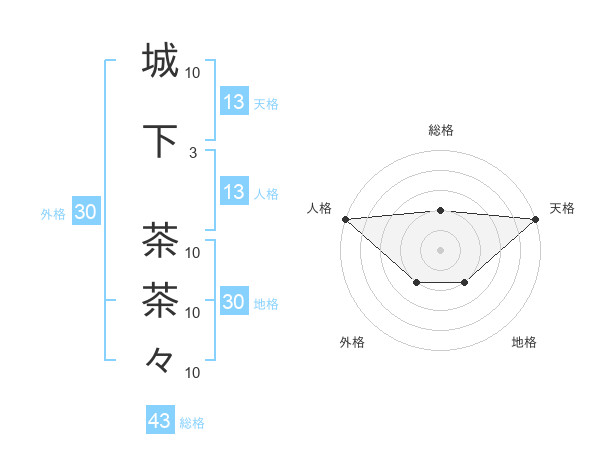 城下 茶茶々さんを姓名の画数から五運を鑑定