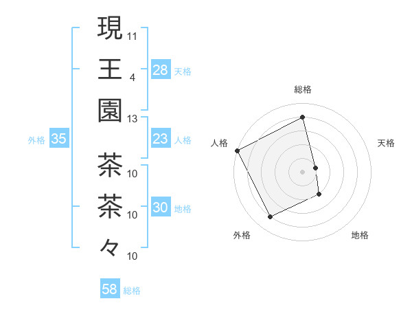 現王園 茶茶々さんを姓名の画数から五運を鑑定