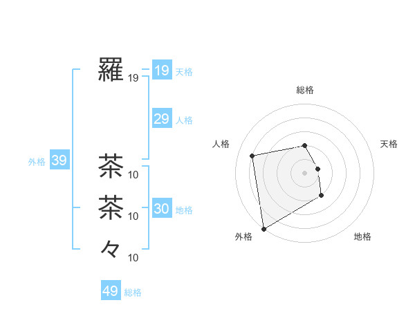 羅 茶茶々さんを姓名の画数から五運を鑑定