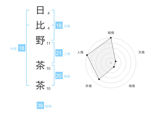 日比野 茶茶さんを姓名の画数から五運を鑑定