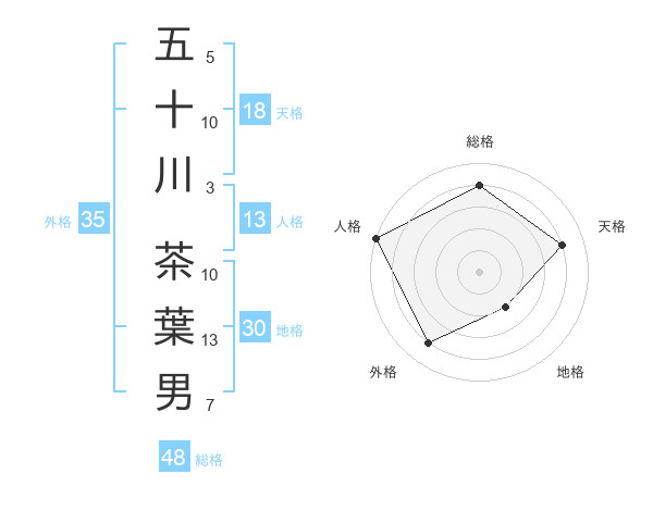 五十川 茶葉男さんを姓名の画数から五運を鑑定