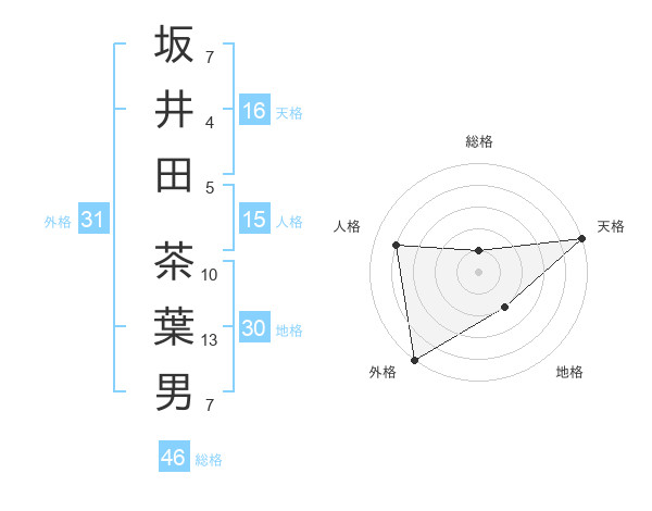 坂井田 茶葉男さんの外格は31画の5点!