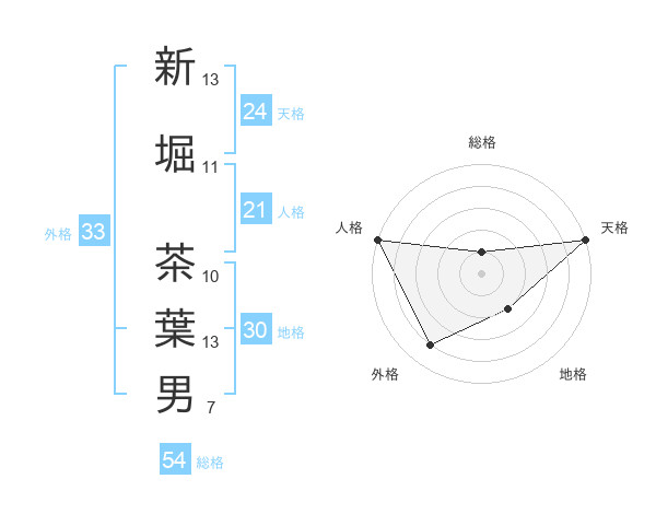 新堀 茶葉男さんの天格は24画の5点!