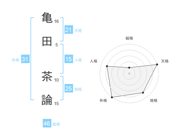 亀田 茶論さんの天格は21画の5点!