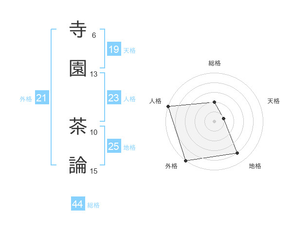 寺園 茶論さんを姓名の画数から五運を鑑定