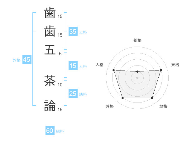 歯歯五 茶論さんの外格は45画の4点!