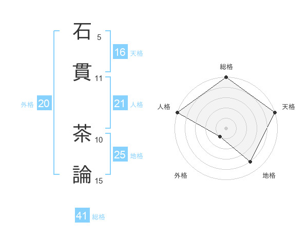 石貫 茶論さんを姓名の画数から五運を鑑定