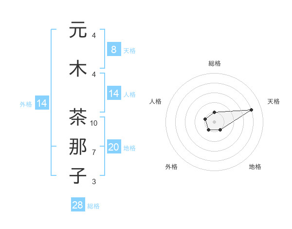 元木 茶那子さんの天格は8画の4点!