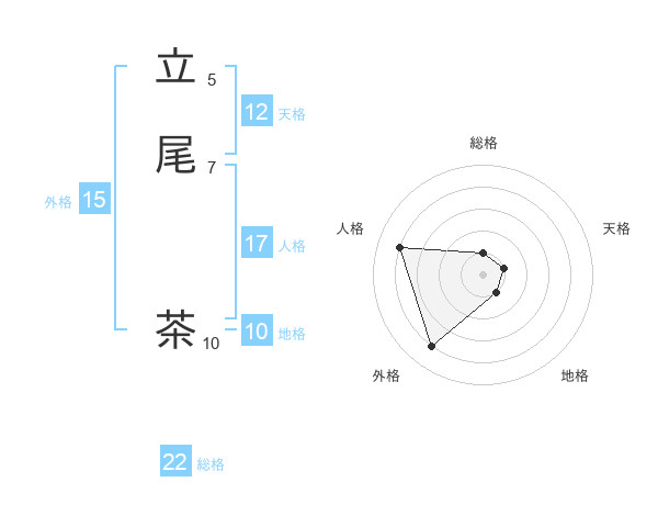 立尾 茶さんを姓名の画数から五運を鑑定