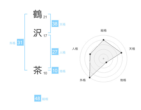 鶴沢 茶さんを姓名の画数から五運を鑑定