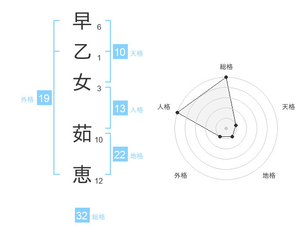 早乙女 茹恵さんを姓名の画数から五運を鑑定