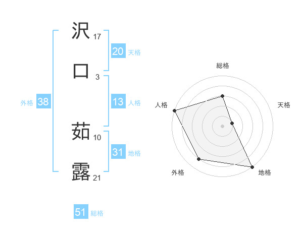 沢口 茹露さんの総格は51画の3点!