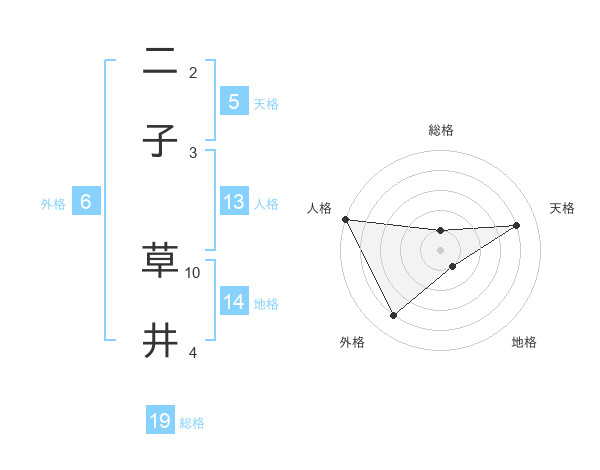 二子 草井さんの総格は19画の1点!