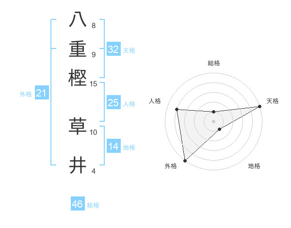 八重樫 草井さんを姓名の画数から五運を鑑定