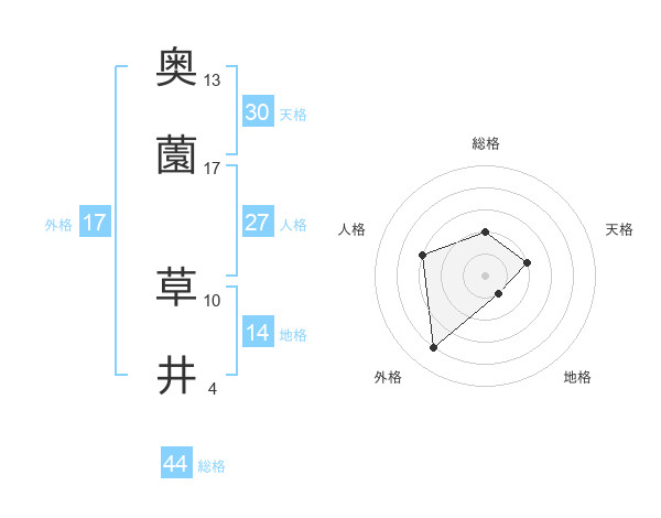 奥薗 草井さんの総格は44画の2点!