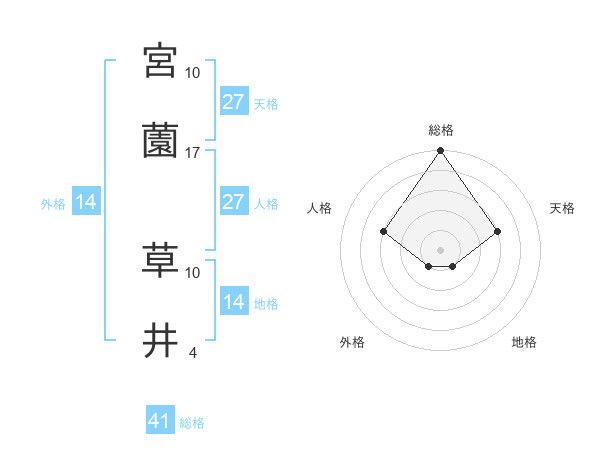 宮薗 草井さんの総格は41画の5点!