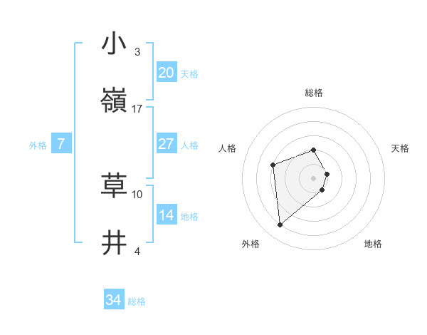 小嶺 草井さんを姓名の画数から五運を鑑定