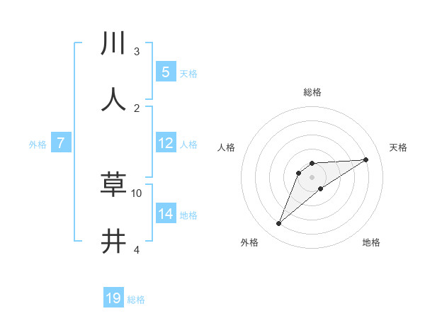 川人 草井さんの地格は14画の1点!