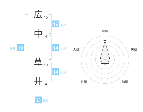 広中 草井さんの総格は33画の4点!