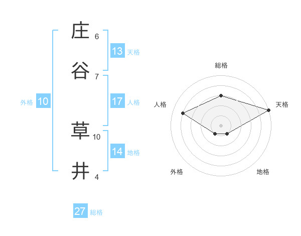 庄谷 草井さんの総格は27画の3点!