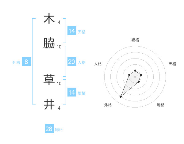 木脇 草井さんの総格は28画の1点!