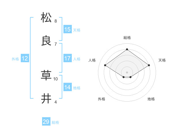 松良 草井さんの総格は29画の4点!