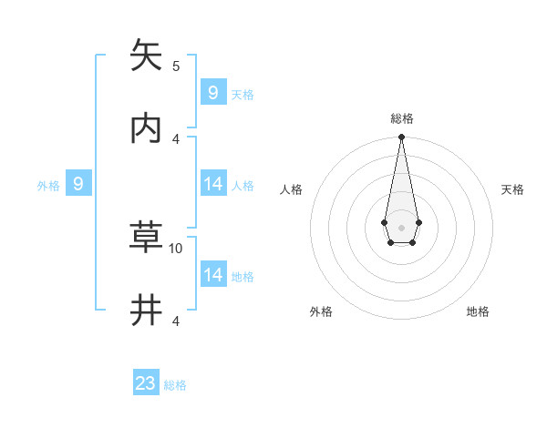 矢内 草井さんの総格は23画の5点!