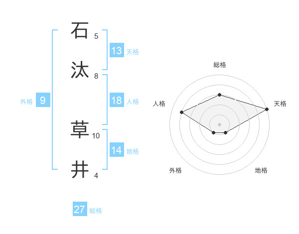 石汰 草井さんの総格は27画の3点!