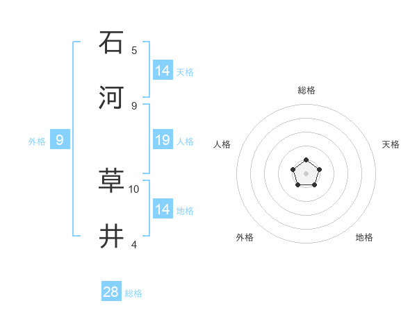 石河 草井さんの総格は28画の1点!