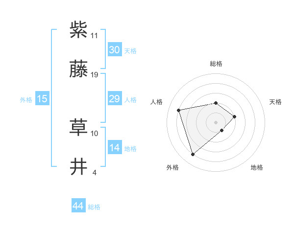 紫藤 草井さんの総格は44画の2点!