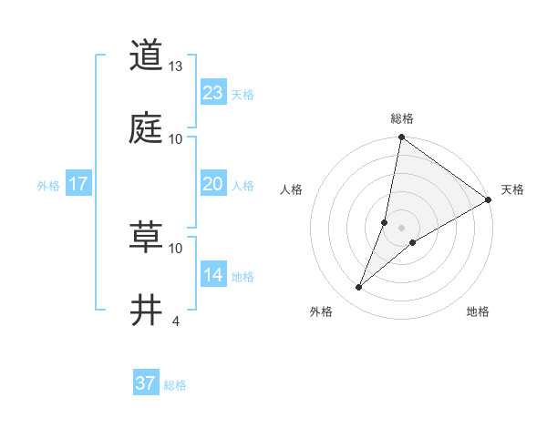 道庭 草井さんの総格は37画の5点!
