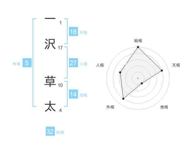一沢 草太さんの総格は32画の5点