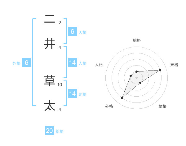 二井 草太さんの天格は6画の4点!