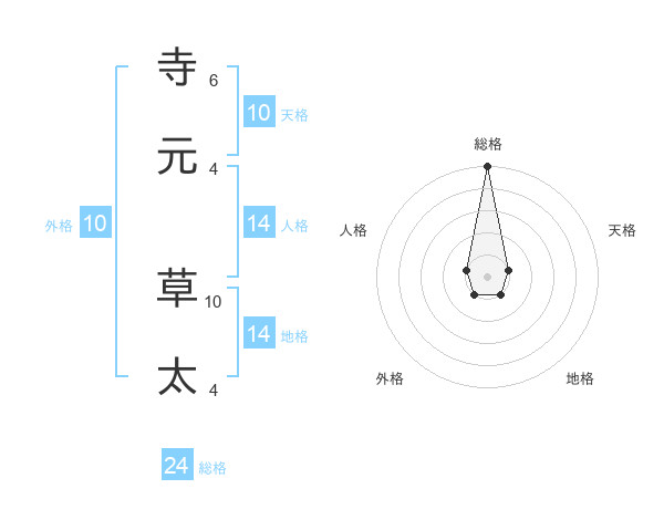 寺元 草太さんの総格は24画の5点!