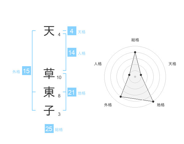 天 草東子さんの地格は21画の5点!