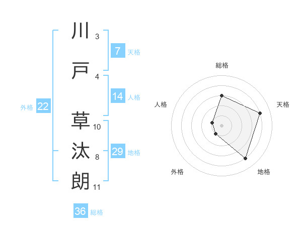 川戸 草汰朗さんを姓名の画数から五運を鑑定