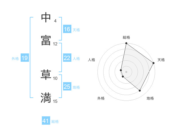 中富 草満さんの外格は19画の1点!