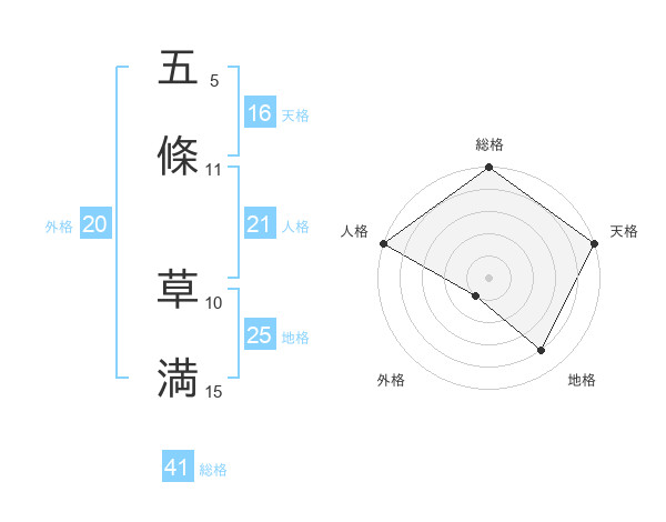 五條 草満さんの天格は16画の5点!