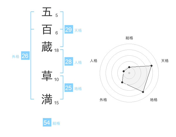 五百蔵 草満さんを姓名の画数から五運を鑑定