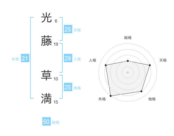 光藤 草満さんの総格は50画の2点!