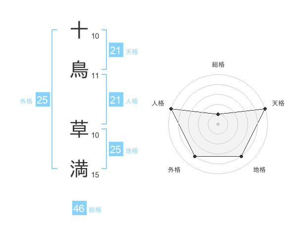 十鳥 草満さんの天格は21画の5点!